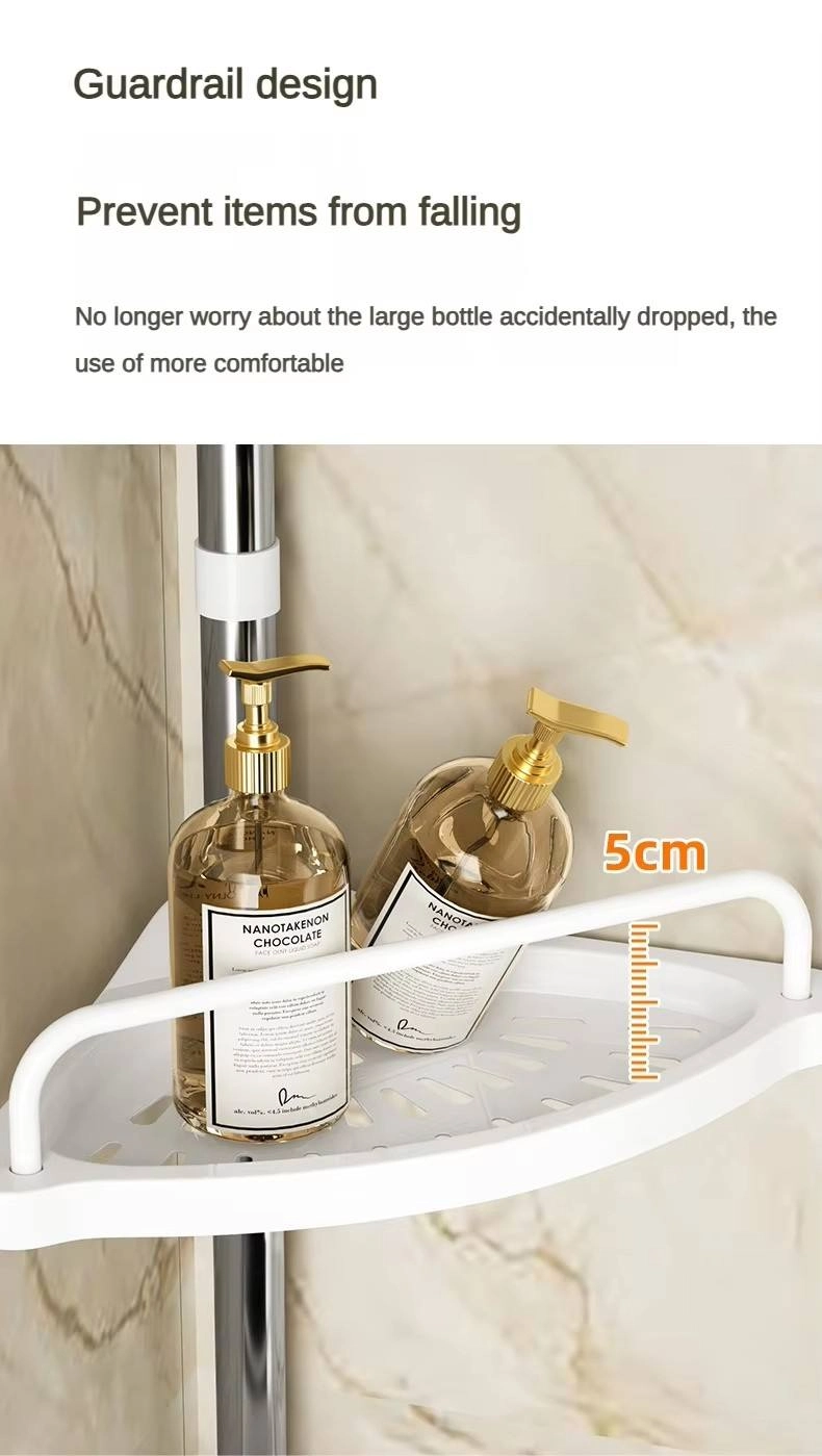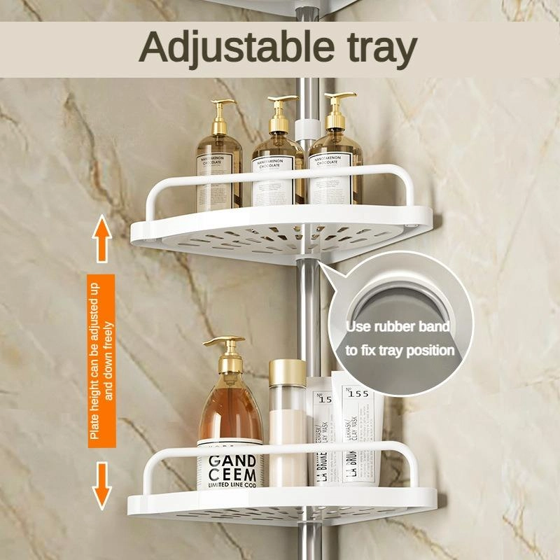 This multi-level telescopic shelf is designed to provide maximum storage efficiency in the unused corner space of your bathroom or shower. Its height-adjustable pole and trays make it versatile for organizing various sizes of toiletries.